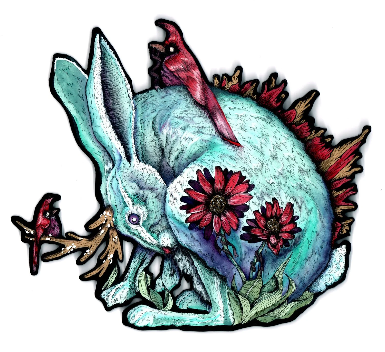 Merrabbit Warren 2.0, 2019, Ink, Paper, Plywood